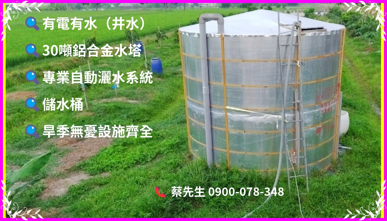 #有電有水 #(井水),配有 #30噸鋁合金水塔 #專業全自動灑水系統 #儲水桶 #設施齊全